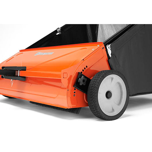 Spazzatrice robusta con capacità di raccolta elevata. Assemblaggio rapido e senza attrezzi.